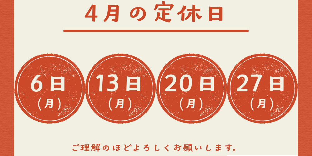 2026年より、定休日が変更になります。 現在:毎週月曜日(祝日の場合は営業) ↓ 2026年より:毎週月曜日 (月曜日が祝日の場合は営業し、翌日の火曜日が定休日) ご迷惑をおかけいたしますが、よろしくお願いいたします。